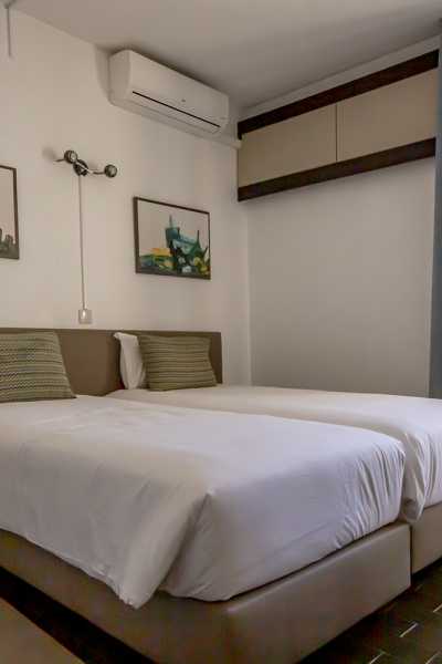 Authentic, thin-crust Neapolitan pizzas from Italian wood-fired oven in a simple, whitewashed room.