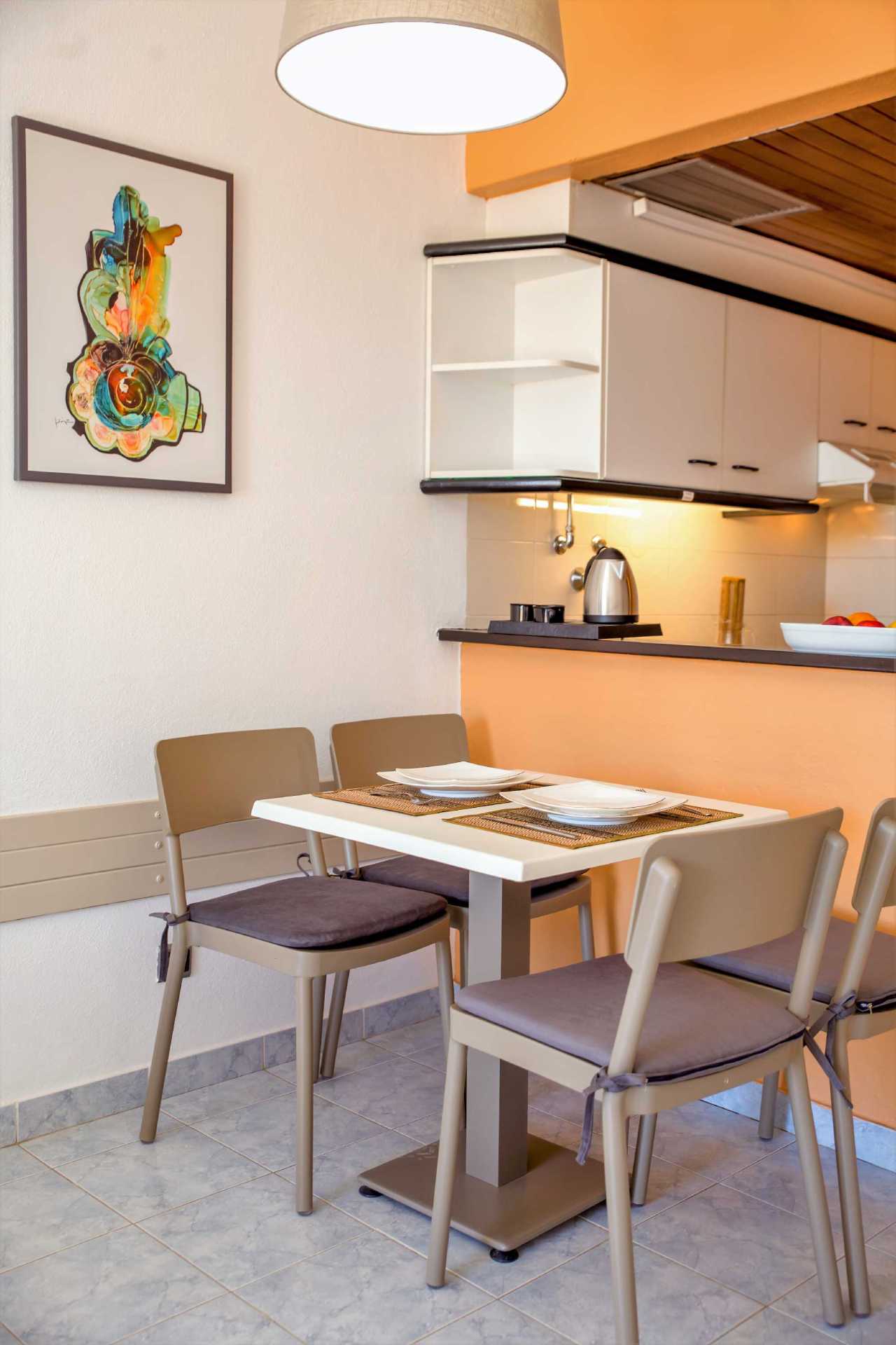 This 1 bedroom apartment features 2 single beds, 2 sofa beds in the living room and a kitchenette.